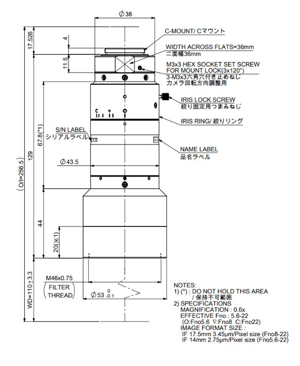* 成像侧允许弥散圆直径为40μm.