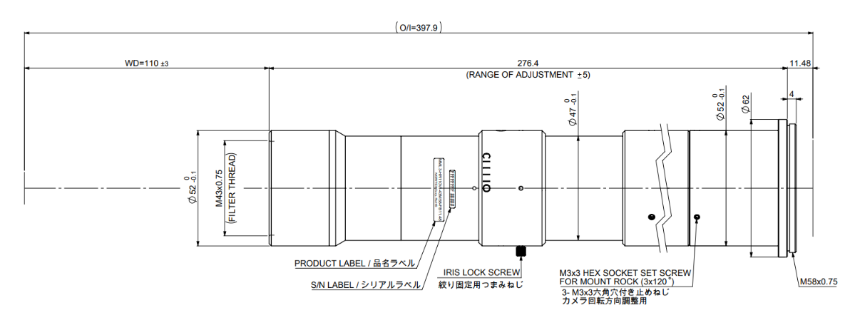 * 成像侧容许弥散圆直径40μm。